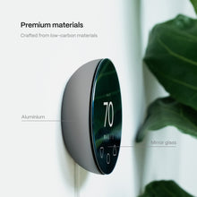 The Klima thermostat, crafted from low-carbon aluminum and mirror glass, offers a sleek, durable design in aluminium silver and graphite gray.